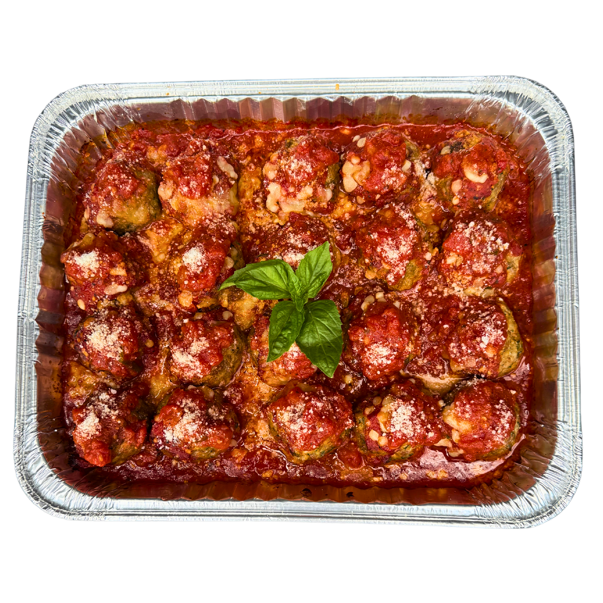 Our meatballs are smothered in our homemade tomato sauce, provolone cheese, aged mozzarella, and grated Romano cheese.